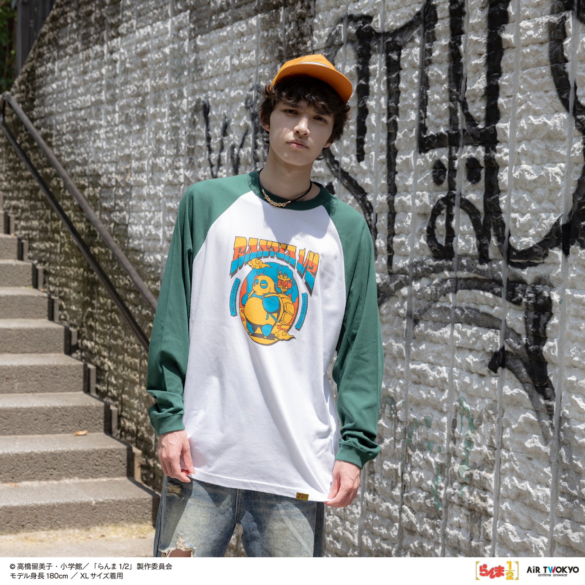 TVアニメ「らんま1/2」第2弾 ポップイラストラグランスリーブTシャツ 3(早乙女乱馬 & 玄馬(パンダ))