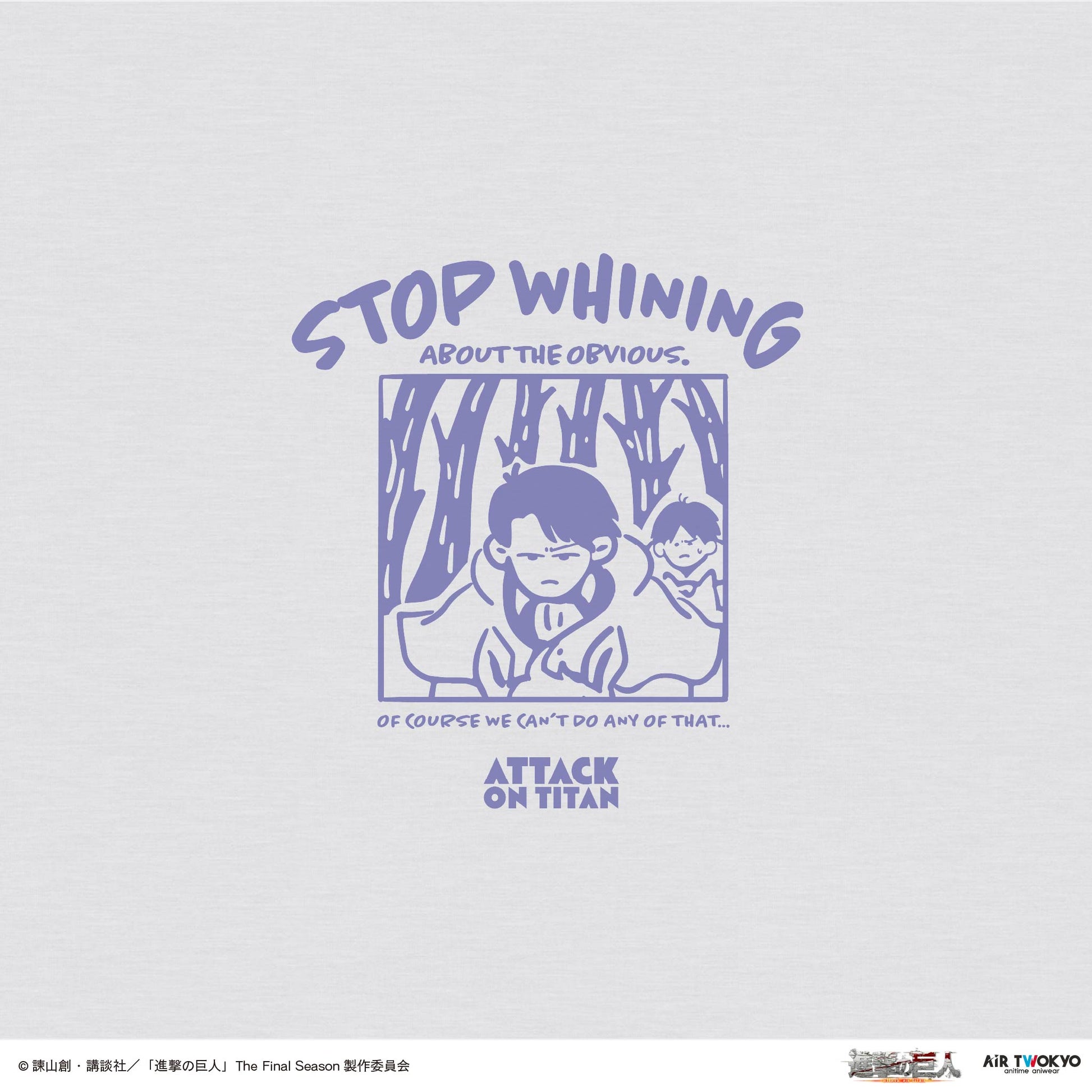胸には、リヴァイが「分かりきったことをピーピー喚くな」と言い放つ姿を、ワンポイントでデザイン。